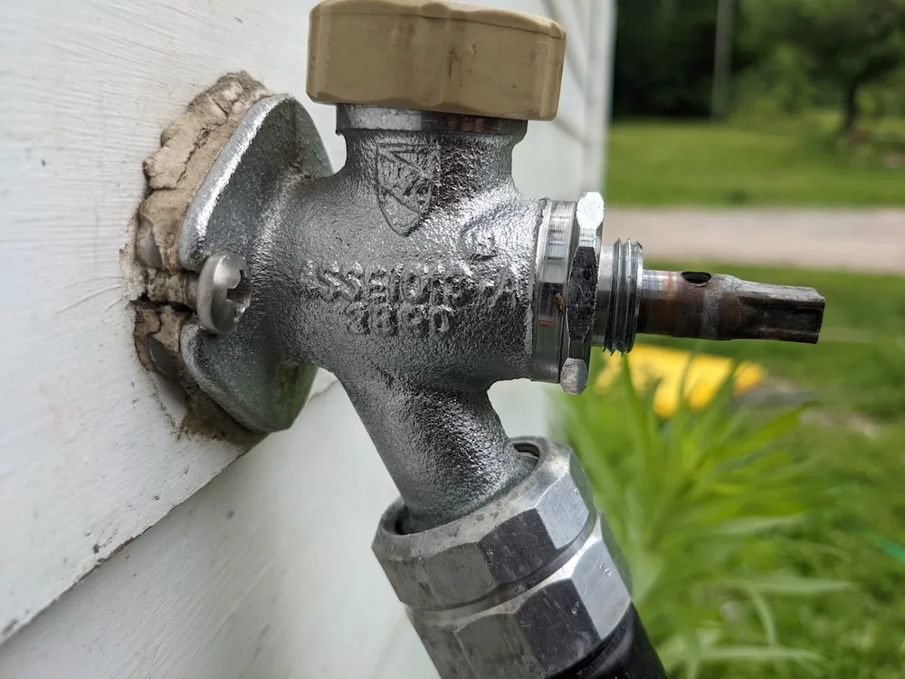 Fix: Re‑caulk with silicone or urethane and snug the escutcheon to the siding. The fixtures should be flush with the house.